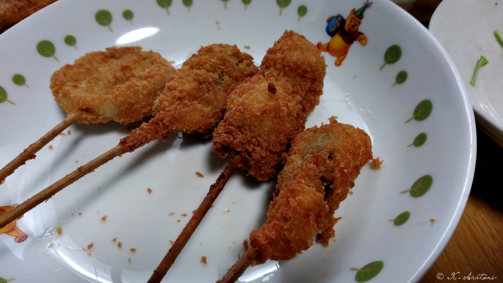 昼ごはんはアメリカンドッグ・牛乳。前回の検診でHba1c=6.5%に上がっていたので,また,しばらくは節制です。だったら夜呑み食いするなってwww。