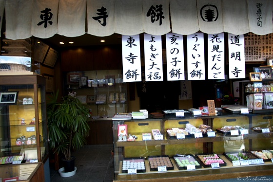 徒歩で西本願寺へ。途中,東寺餅のお店でお土産購入。