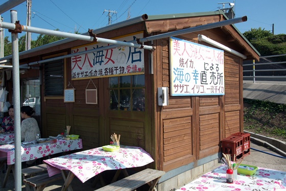 美人海女の店でイカ焼きを食べて,