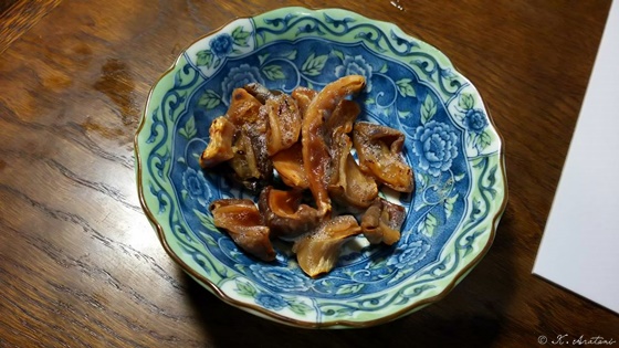 しっかり炙るか焼いて,白い泡が浮かぶまで熱すると,食感,味ともに最高のツマミです。 せんじがら。