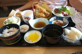 温泉のレストラン「吉華」でジャンボ丼とようこそ膳で遅めのランチ。
