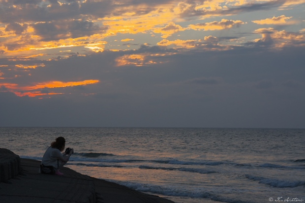 あわてて,海岸へ出たけれど,残念ながら夕陽は雲の向こう(涙)
