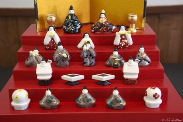 有田の街中には,いたるところに無料駐車場があって,買い物・観光共にお手軽です。あちこちのお店を片っ端から覗いて歩きました。ちょうど雛(ひいな)のやきものまつり開催中でめずらしい磁器のお雛さまをいろいろ見ることができました。