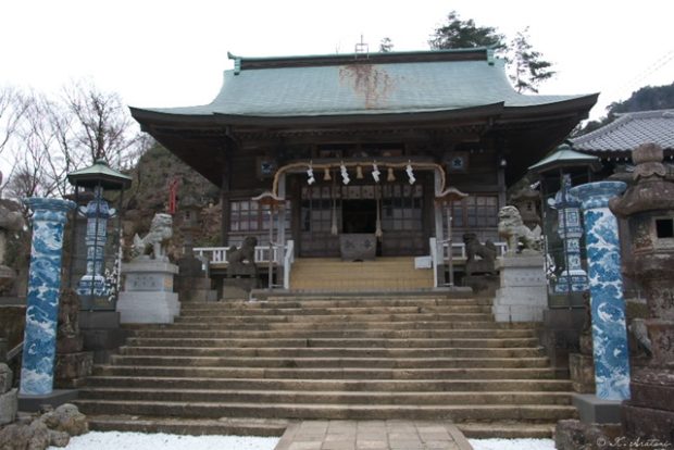 参道の階段途中にJRの踏切があったり,陶器の鳥居や狛犬など珍しい物一杯の神社。
