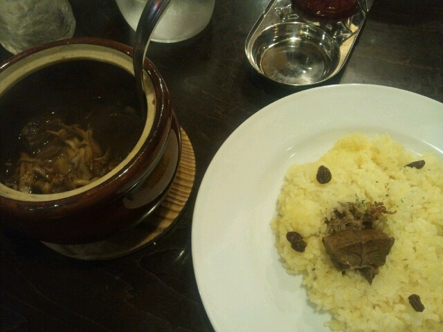 残業中に職場脱走。 朝御飯カレーうどんのりっきーちゃん、昼御飯レトルト牛角煮カレーのおら、それを見ていてカレーを食べたくなった佐吉の三人で、「ヘンテ」へ。 ビーフと四種類の茸バターソテー