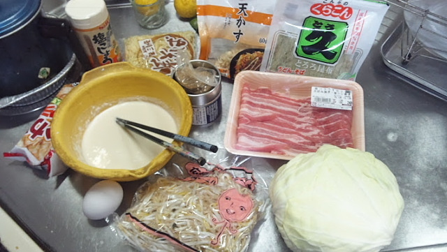 イカ天・天かす・豚三枚肉