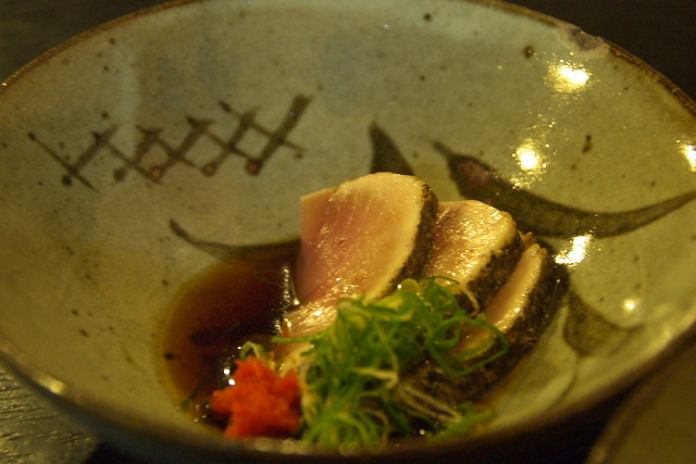 つきだし:鱈白子・おでん・かつおたたき。