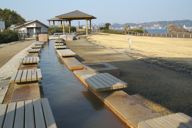 溶岩なぎさ遊歩道を歩いた後, 足湯につかり,