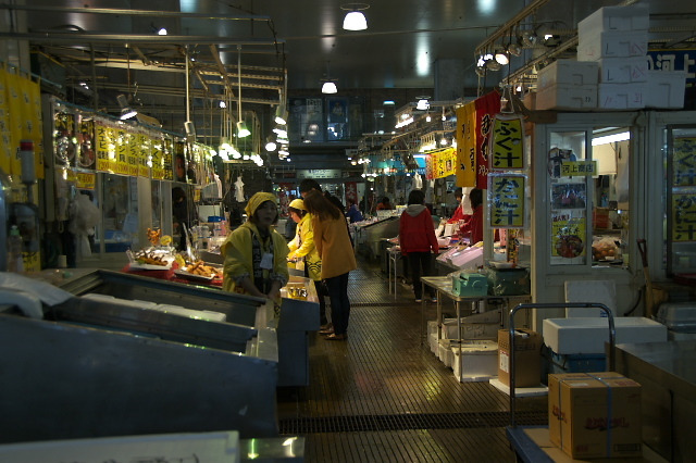 届けてから,唐戸市場で晩御飯用のキンメダイと,