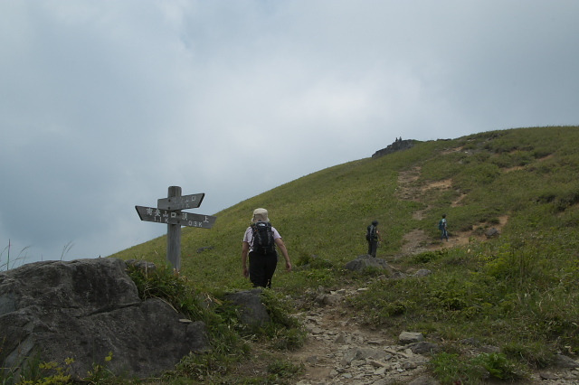 南側の展望が良い副峰で大休憩した後,残りの急坂を登って, 12時に山頂着。