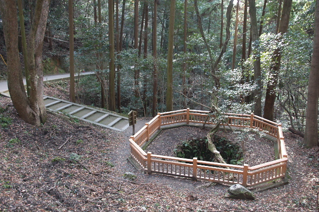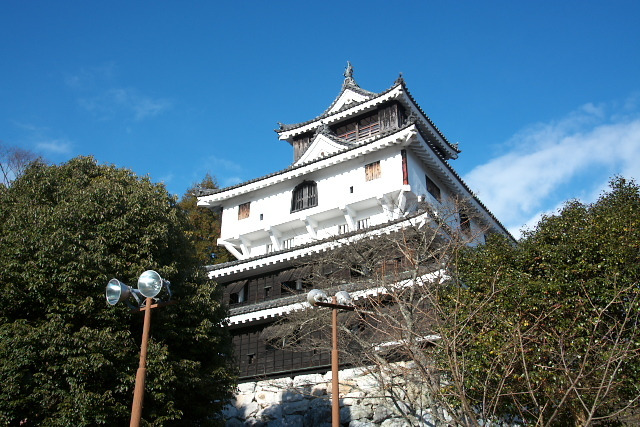 階段の道をあるいて岩国城跡。