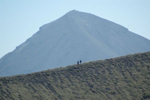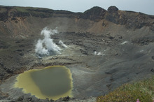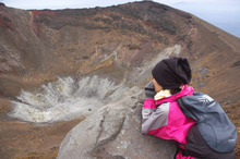 山頂では,直径900m、深さ300mの火口を望むことができ,