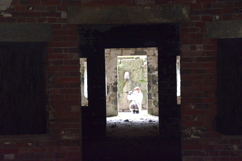 きちんと保存管理された砲台跡で写真撮影。