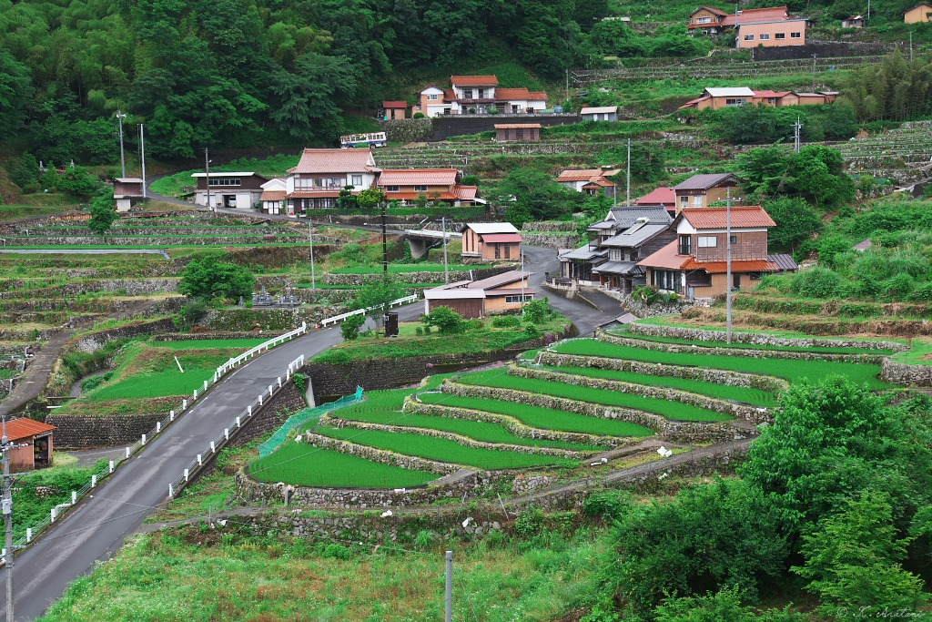 柿木村の大井谷の棚田の写真撮影。田植え後で緑が綺麗でした。