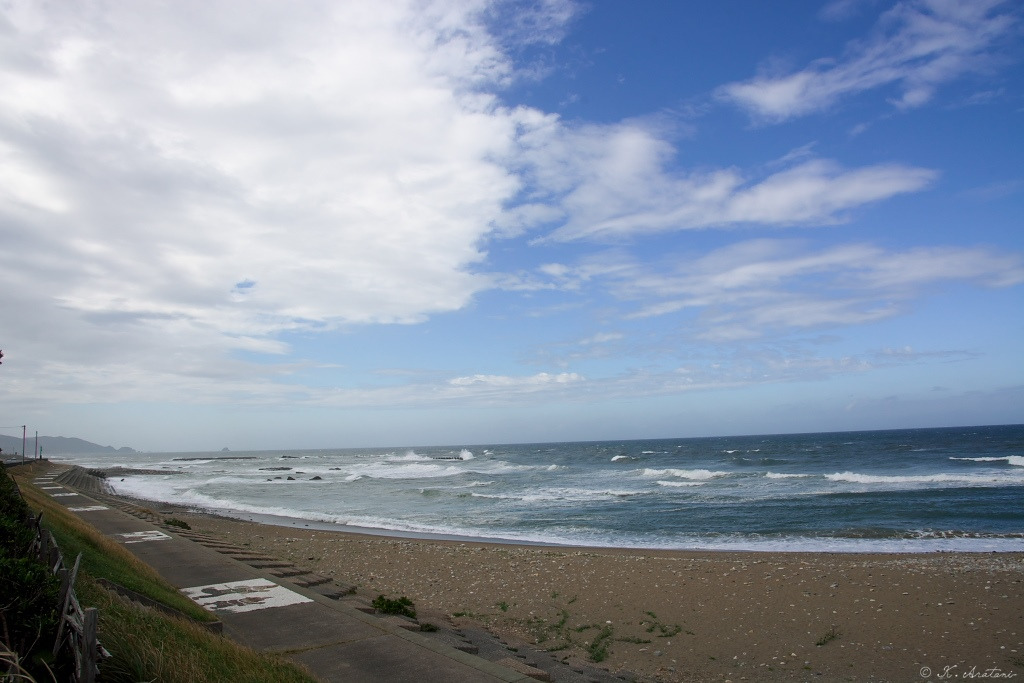 錦町~吉賀~柿木村を抜けて,国道9号線。昼頃に益田を通過して,国道191号=北浦街道。三里ヶ浜で写真撮影。