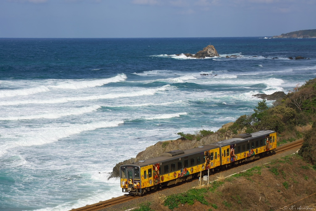 でもこのスポットのもう一つの魅力。鉄道写真撮影はできた。ちょうど石見神楽列車の通過時刻で写真撮影をすることができた。