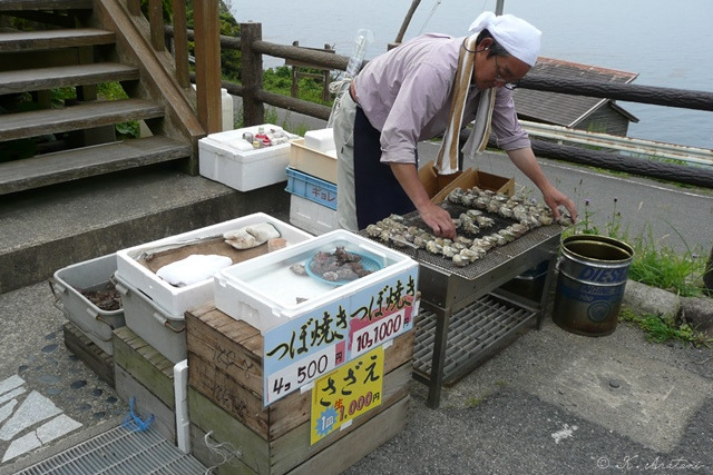 角島灯台公園を巡ってから,再び「玄海」に戻ってアワビの残酷焼き(またまた,おまけ付き)www。