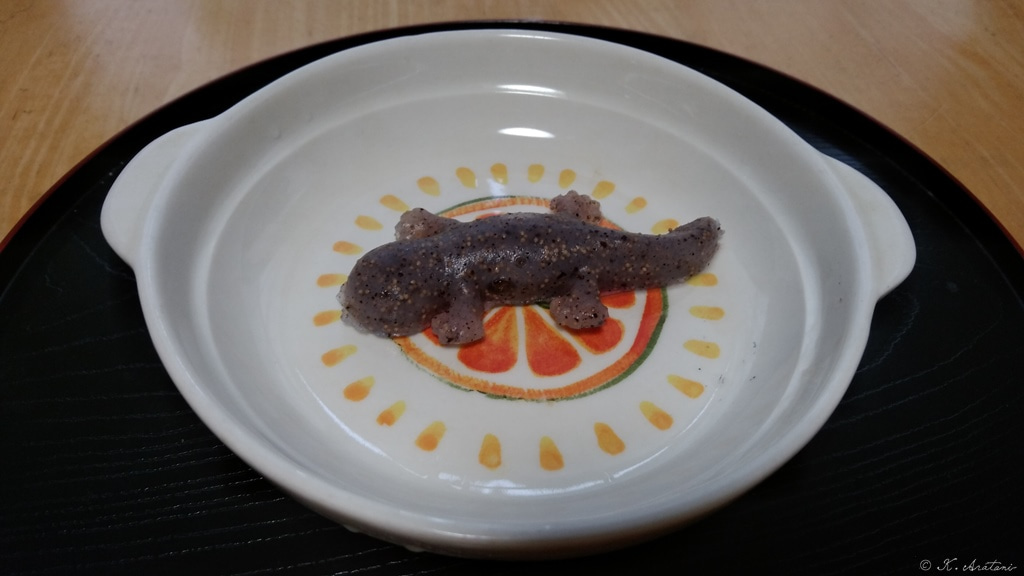天然記念物のオオサンショウウオの形をしたこんにゃく。
