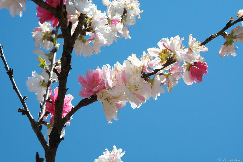 快晴だったので青空を背景にして,花桃の写真を撮ることができました。