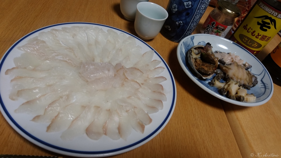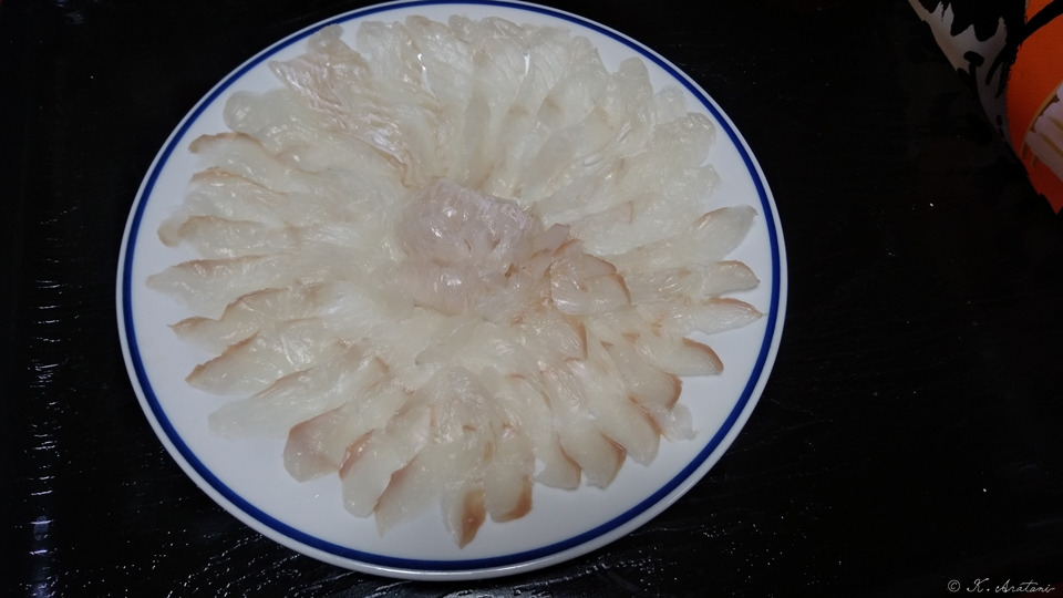 やっぱり,うまく美しく造れないなあ<薄造り・菊盛り?。