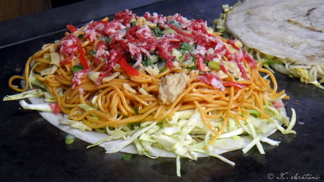「殿ちゃん」にたどりつきました。愛想のいいおかみさん。辛麺にしてみました。ソースかたっぷりと辛麺の味が濃かったけれど、体はほかほかに温まり、丁寧な焼きでうまかった。