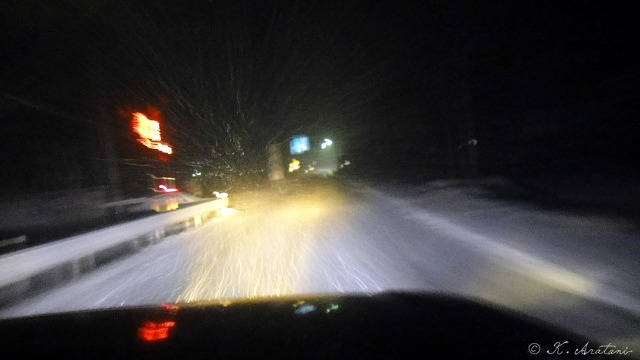 引き返して再び尾道道を世羅まで走る。雪になりました。