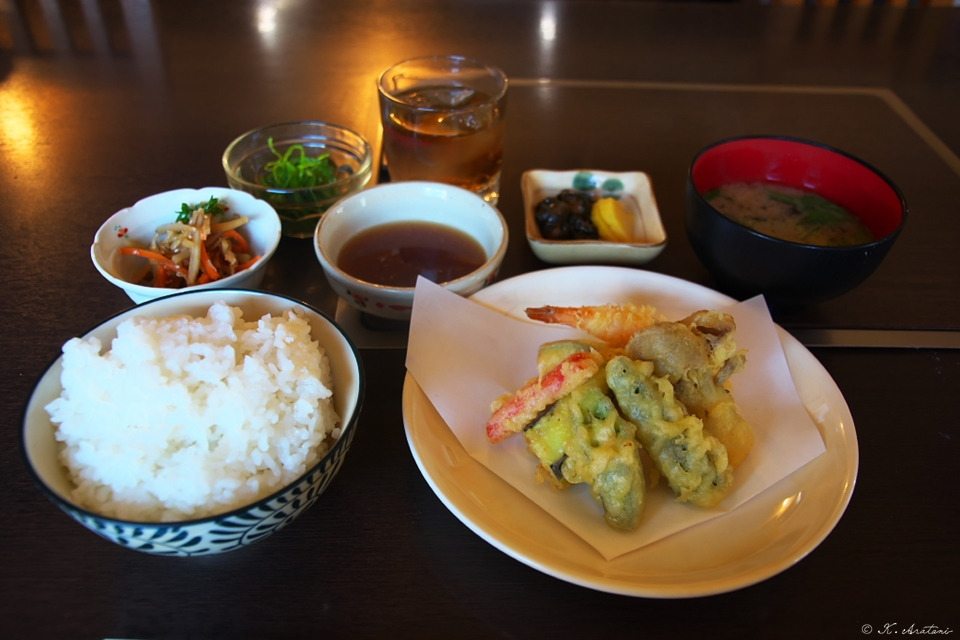 昼の日替わり定食をいただきました。小鉢2つと香の物・みそ汁・ご飯・メインデッシュは天ぷらです。おいしかった~。特に小鉢のひとつ,なんだかコリコリした食感で独特の味付けの小鉢が美味かった。何なのか聞いておけばよかった。
