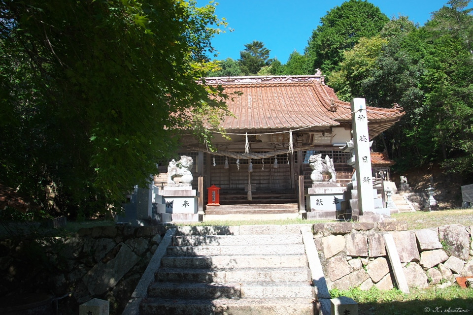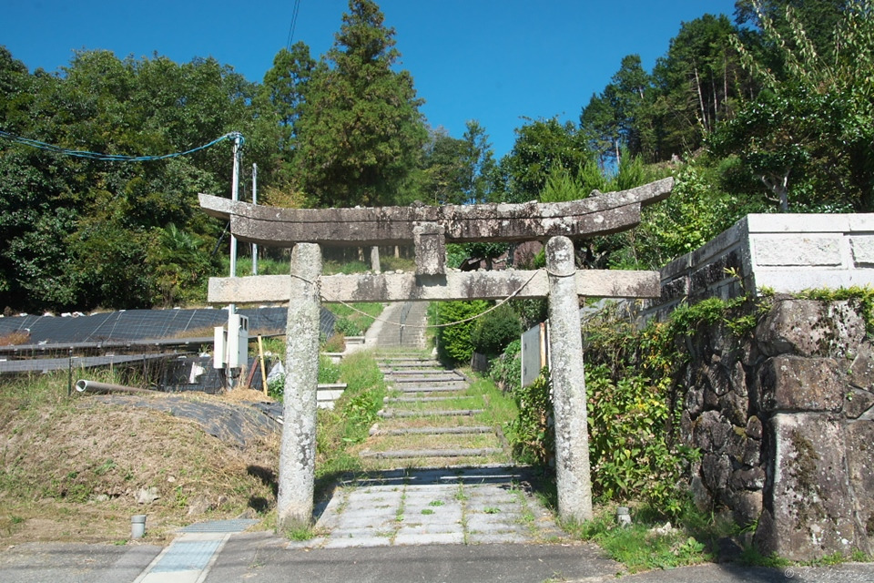今日はほとんどアップダウン無しの楽勝プチウォーキング・・・のはずでしたが,川向うに鳥居と山へ向かう長い階段が・・・。神はやはり試練を与えました(大笑)。マップで見ると椋梨八幡神社。行かないという選択肢はありまぜん。