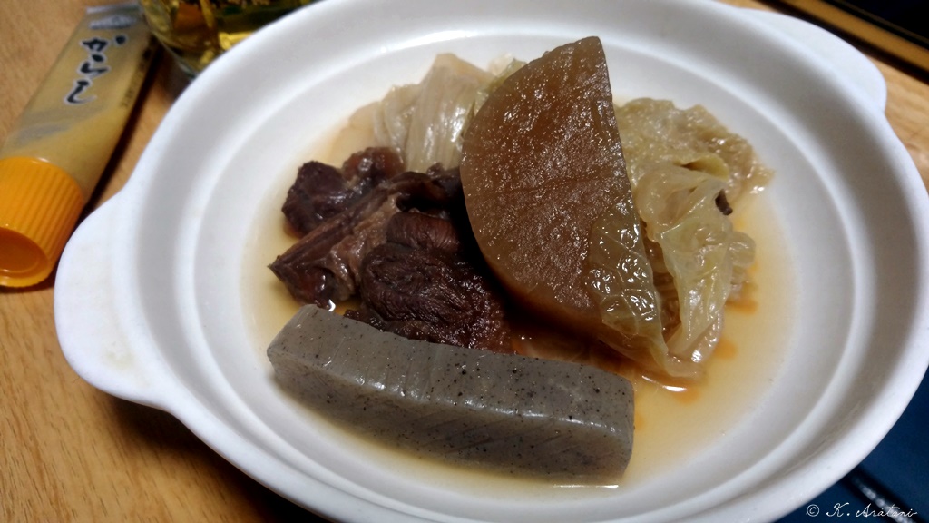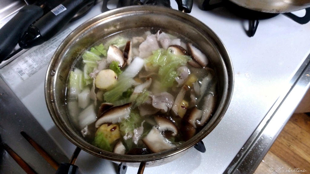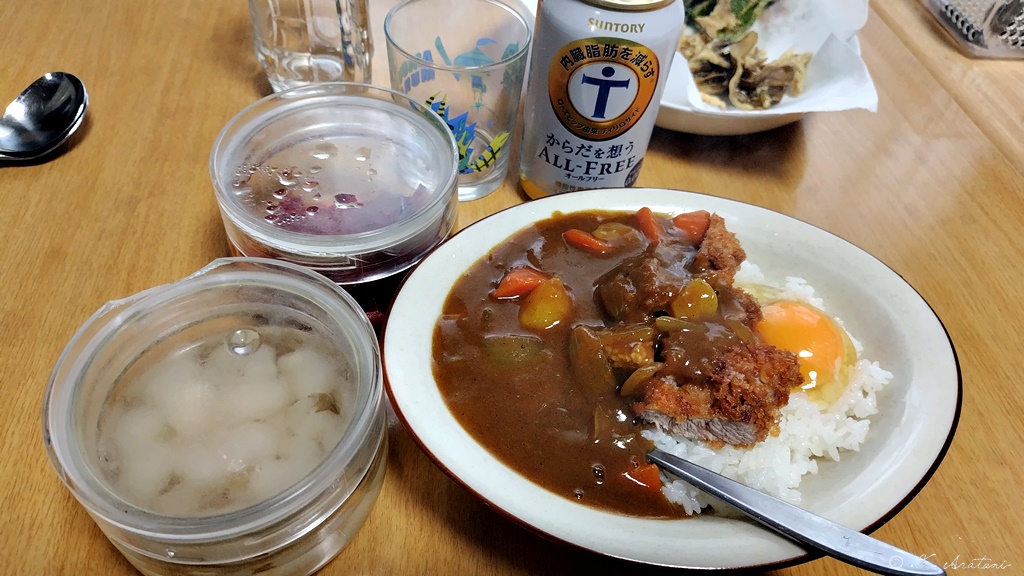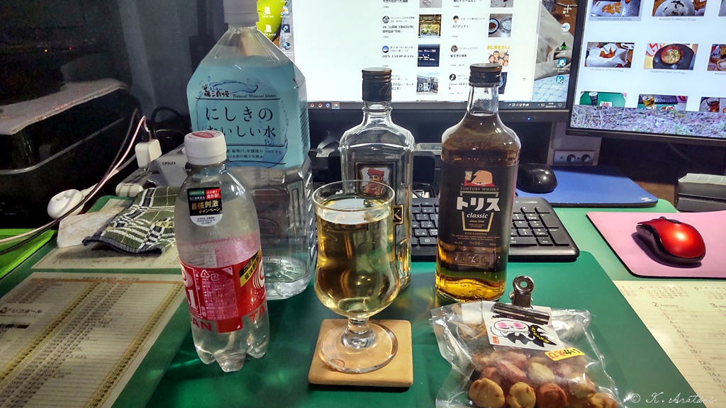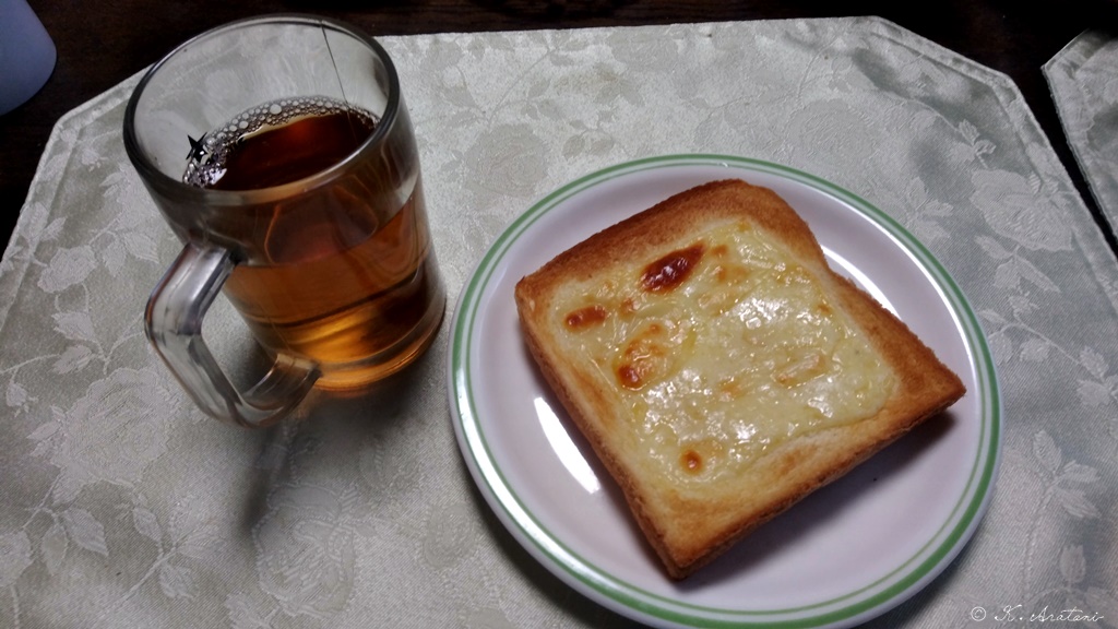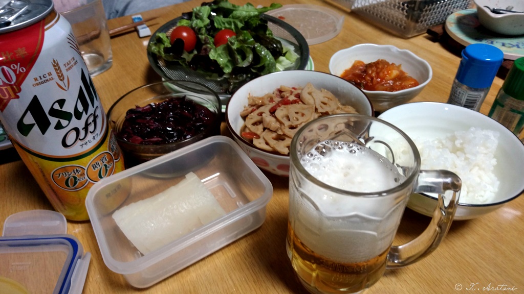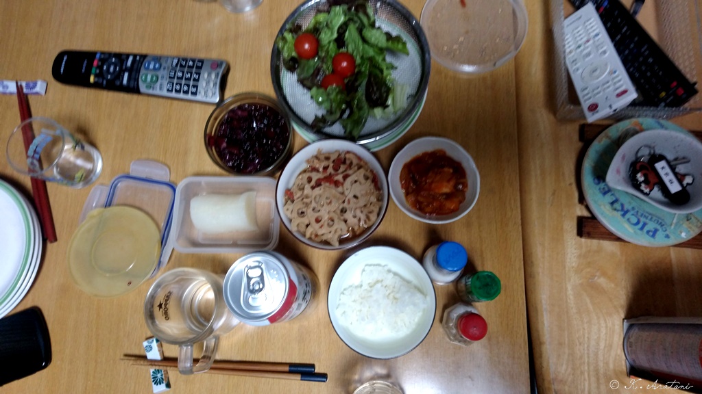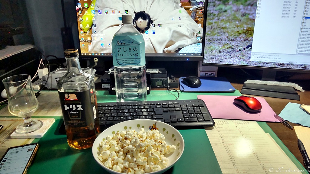 晩ごはんは,かみさん手造りコロッケ。サラダ。豚汁。深夜にポップコーンだけでやめとけばいいのに,ミルクフランスまでつまみにして,ハイボールと水割4杯。